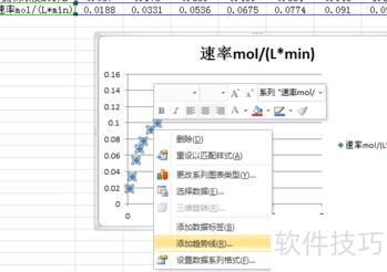 单击图中任意数据点选中,右键点击并选择添加趋势线即可。