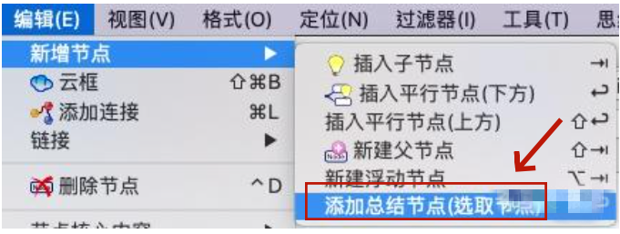 4、在新增总结节点的时候,需要注意的一点是:总结节点不能跨节点。红色之间、蓝色之间可以新增总结节点,而不能选择部分蓝色和部分红色节点新增总结节点。如图所示: