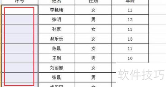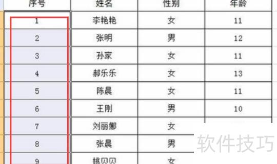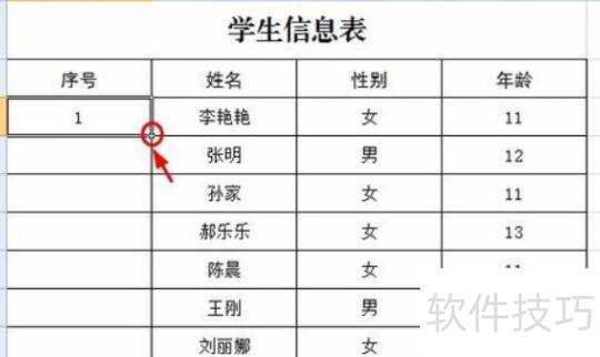 将光标置于红色框线处,向下拖动填充序列号列至完整。