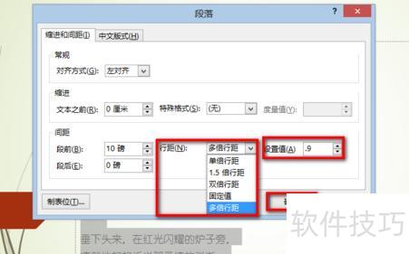 在弹出的段落窗口中找到行距选项,点击下拉菜单选择所需行距,确认即可完成设置。
