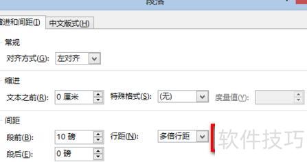 段后间距:输入或拖动选择段落下方所需的距离值。