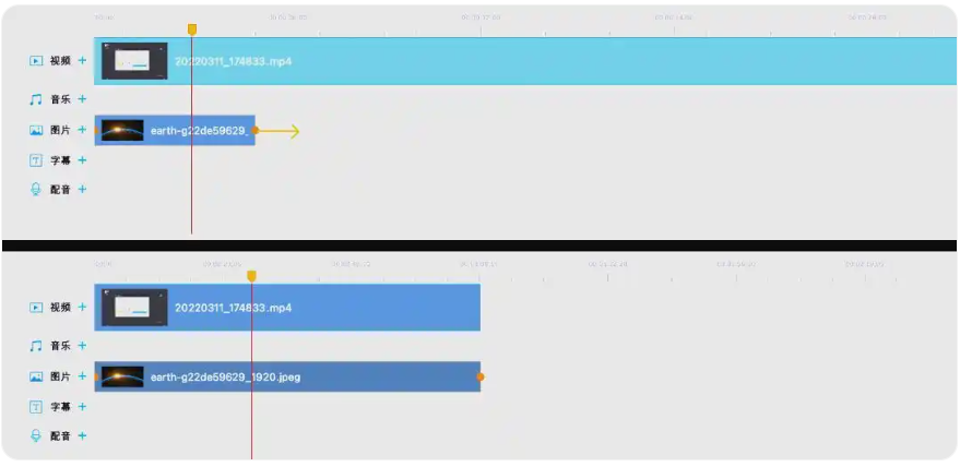 7、你可以在轨道上将背景图片的时长设置为与视频一致,以确保图片与视频的完美同步。