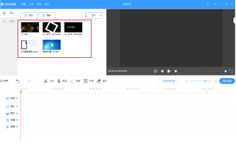 2、点击“添加”,将准备好的视频素材全部添加进来。