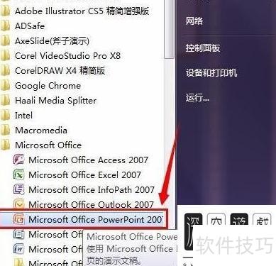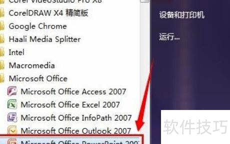 从开始菜单启动Microsoft Office PowerPoint 2007程序。