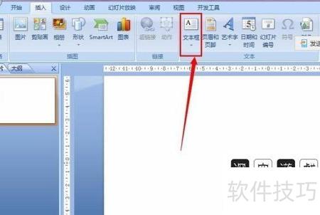 在插入菜单中选择文本框,点击文本选项框中的图标即可。