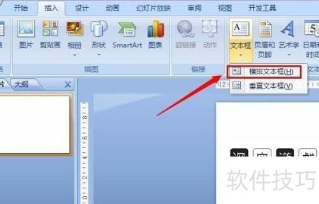 在弹出菜单里,点击选择横排文本框。