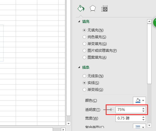 9 、调整透明度:在右侧设置栏中,将文本填充透明度调至 75%。