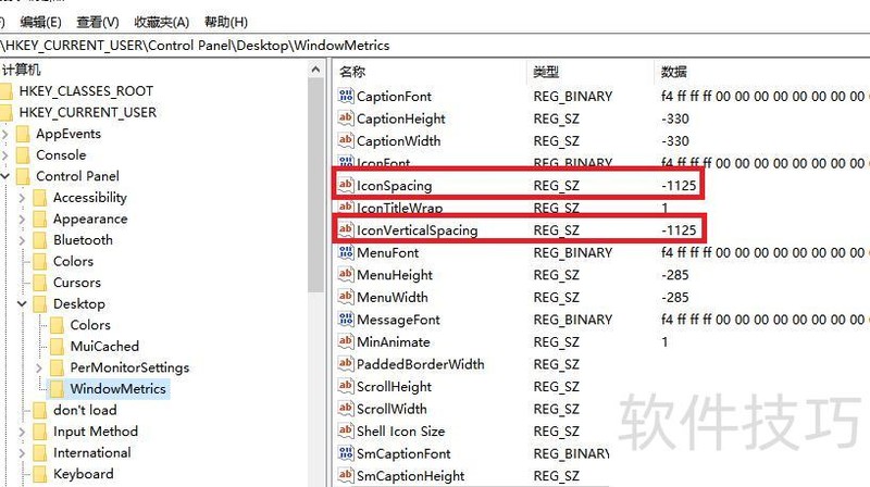 双击右侧的IconSpacing(水平间距)和IconVerticalSpacing(垂直间距),设置所需数值,点击确定保存,随后重启或关闭电脑以应用更改。