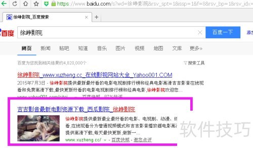 7、 以吉吉影音播放器为例,参考徐峥影院。在网络搜索徐峥影院,进入相关网站。