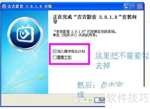 6、 最后一步:添加缓存优化,移除雷霆之怒附加软件,点击完成。