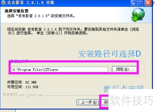 5、 步骤三:修改安装路径,尽量避免选择C盘,可改为D盘,随后点击安装按钮。