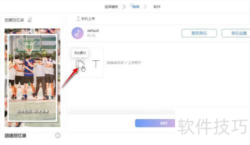 11、 然后点击添加素材按钮。