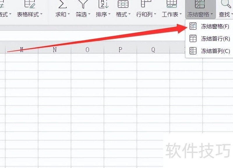 方法一:开始页菜单栏冻结