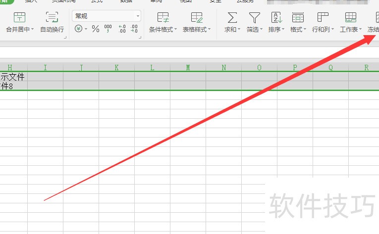 点击开始页中的冻结窗格选项。