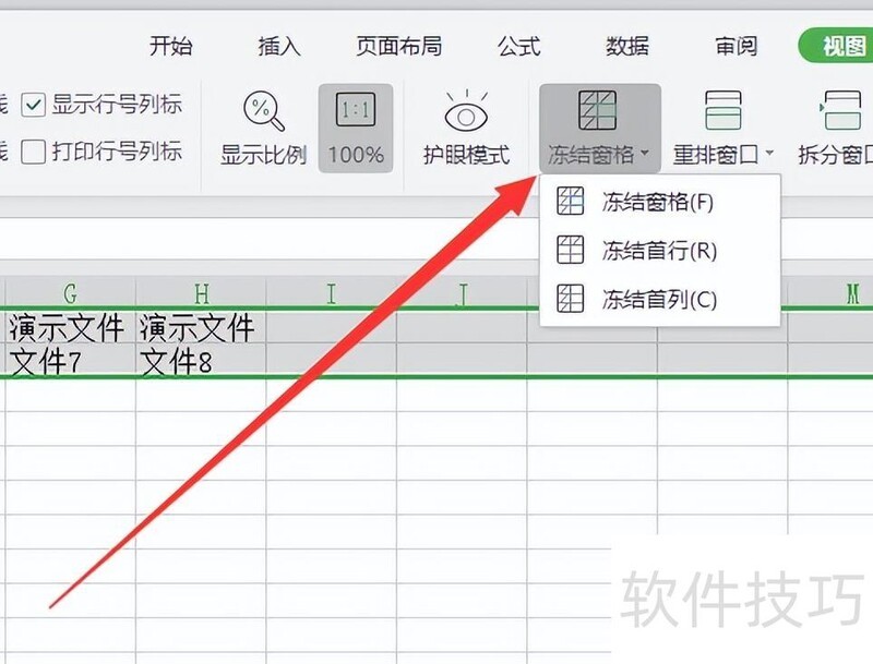 方法二:视图菜单栏冻结技巧