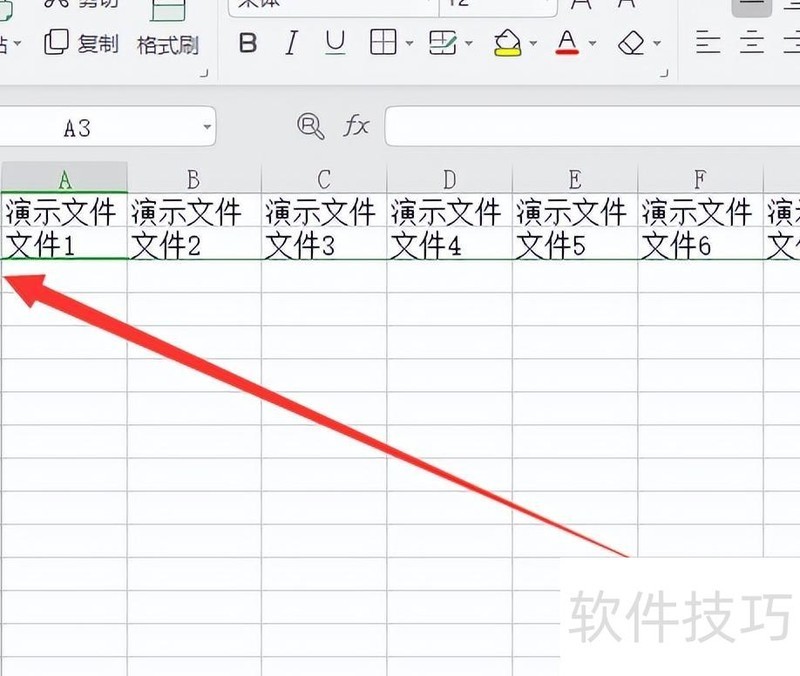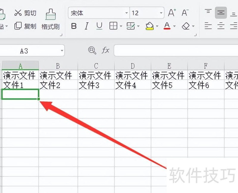 打开目标表格,选中第三行的A3单元格。