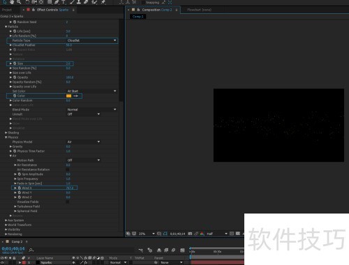 使用Red Giant的Trapcode Particular插件来创建粒子火花效果。