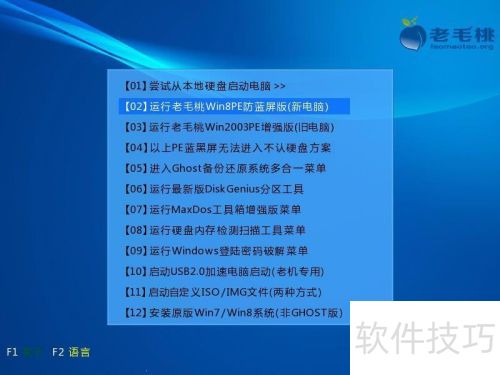1、 启动后进入老毛桃界面,选择老毛桃win8pe选项。