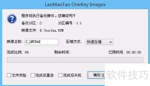 5、 接下来,可直接点击确定备份,或先设置映像名称与压缩方式再备份。