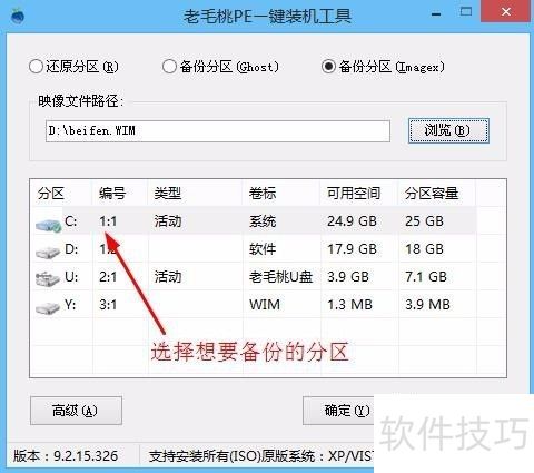 4、 在磁盘列表里选取目标备份分区,确认后继续操作。