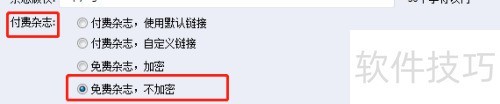 6、 5.在版权设置里找到付费杂志,再找其下方的免费杂志,不加密的话,点左侧圆圈完成设置。