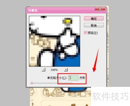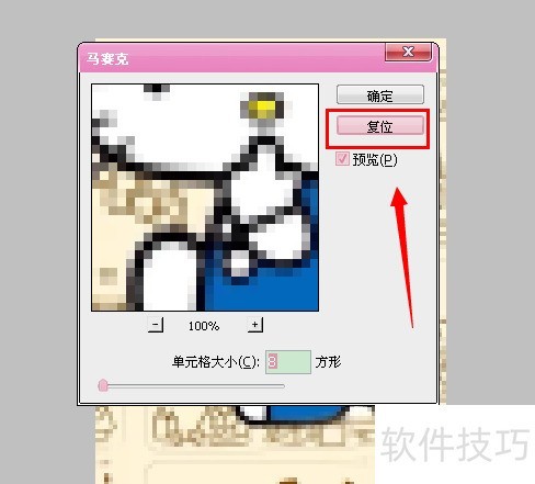 7、 按住Alt键,取消变为复位,点击后,图片将恢复为默认的马赛克单元格尺寸。
