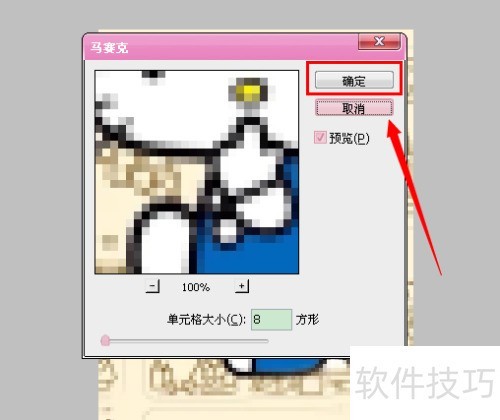 9、 处理完毕后,整张图片都会被加上马赛克效果。