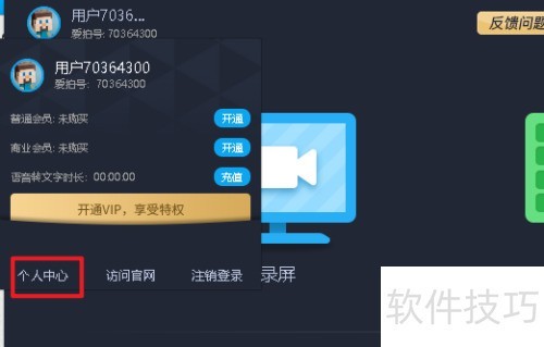 2、 点击左上角头像,进入个人中心。