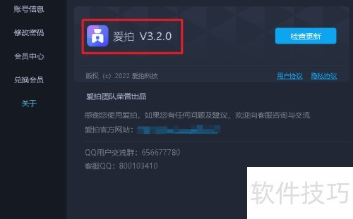 要查看爱拍版本号,请按照以下步骤操作: