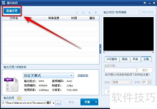 1、 开启暴风转码后,点击添加文件选项。