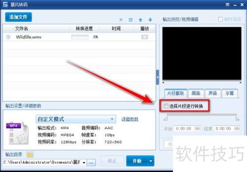 4、 勾选选择片段码率进行转换。