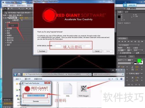 6、 请下载Trapcode Particular 2.0版本,网上资源很多。解压后可直接获取Trapcode文件夹,将其复制到AE根目录下的Plug-ins文件夹中。启动AE软件,检查是否需要注册,通常下载插件时会附带注册码或注册机。这样,AE CS4和AE CS5的粒子插件就都安装完成了。