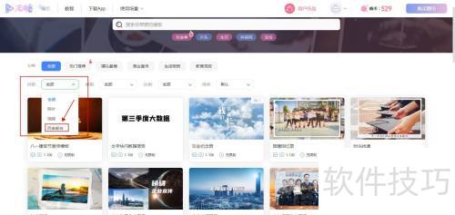 2、 打开模板页面,于内容筛选里选两者都有,查看能同时上传照片与视频的模板。