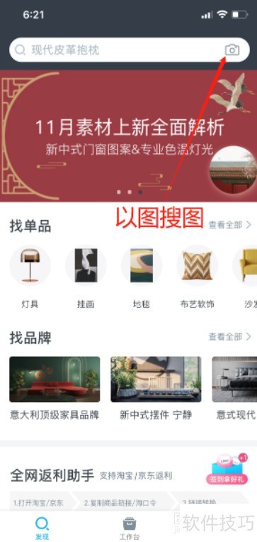 4、 点击顶部搜索栏的照相机按钮,可上传商品图片来搜索,支持jpg、png等格式图片。