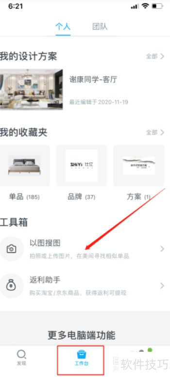 6、 在个人模块里,点击工具箱的以图搜图按钮。