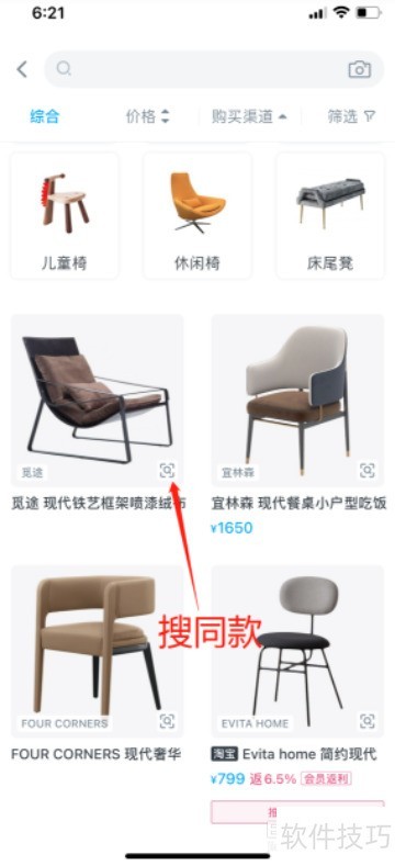 8、 直接点所需单品进入单品页,再点右下角搜同款图标。