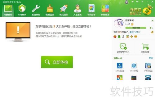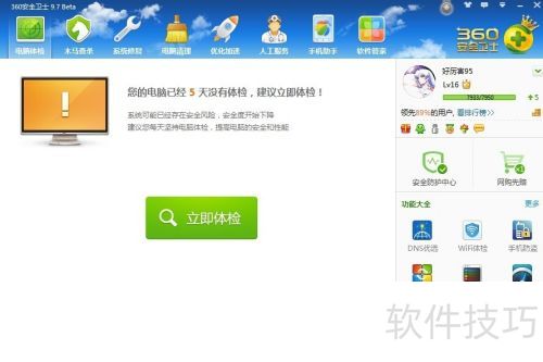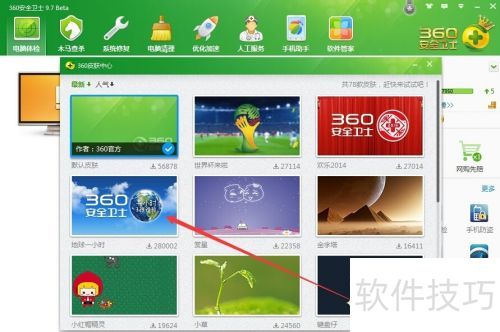 大家都用360安全卫士,但可能没留意换肤功能。下面我为大家演示如何给360安全卫士更换皮肤。