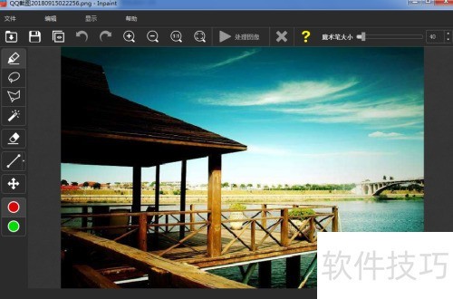 2、 打开Inpaint软件,所示,点左上角文件后选择打开。