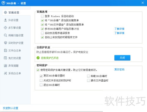 8、 如此一来,下次打开360杀毒软件并更改其设置时,就得输入密码了。