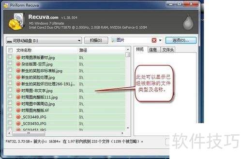 3、 Recuva界面简洁,功能清晰。左窗显示文件列表,右窗展示文件基本信息,一目了然,便于操作使用。
