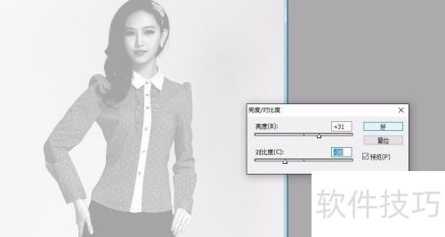 2、 选择青色通道,调整亮度和对比度,使照片色调更利于后续操作。