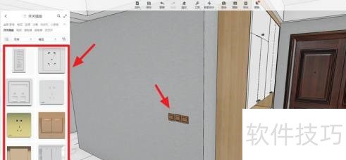 5、 根据需求选择合适的开关插座并确定放置方案,完成布置。
