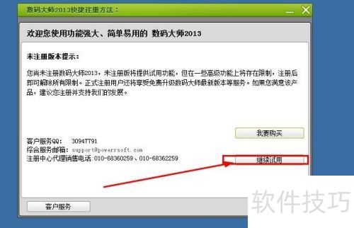 2、 然后点击继续试用,土豪可直接使用正常版本。