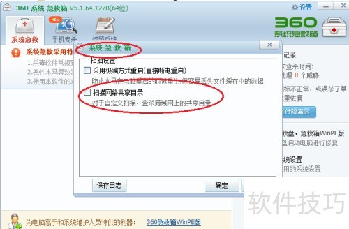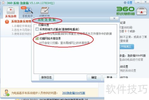 360系统急救箱怎样设置不扫描网络共享目录?下面我们一同来看。