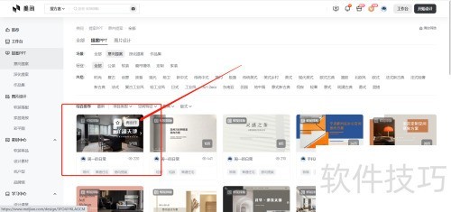 1、 登录美间网站,点击左侧提案PPT或图片设计内容,进入方案页面查看。