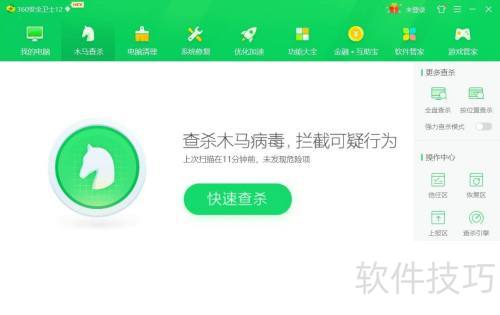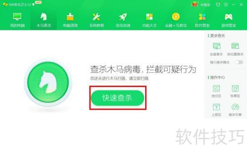 3、 第三步,用鼠标点击快速查杀功能。
