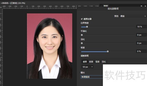 2、 所示,用AffinityPhoto的优化蒙版功能把照片中的美女选出来。