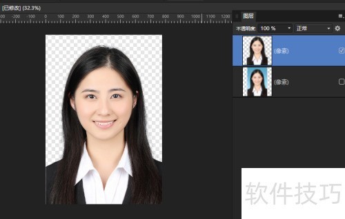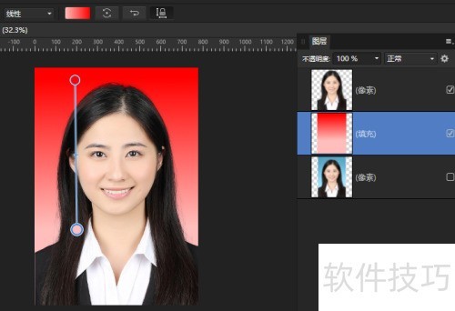 1、 启动AffinityPhoto,打开证件照,,证件照背景为蓝色渐变。
