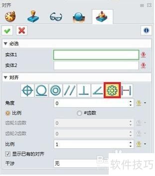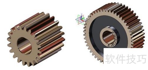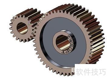3、 接下来,使用中望3D软件,将下图中的两个齿轮零件进行装配。通过装配模块里的对齐功能,能够轻松设定齿轮间的装配关系与啮合关系,具体效果所示。
