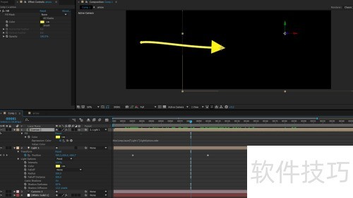 3、 画个箭头,新沫预合成,3D效果,填充颜色。